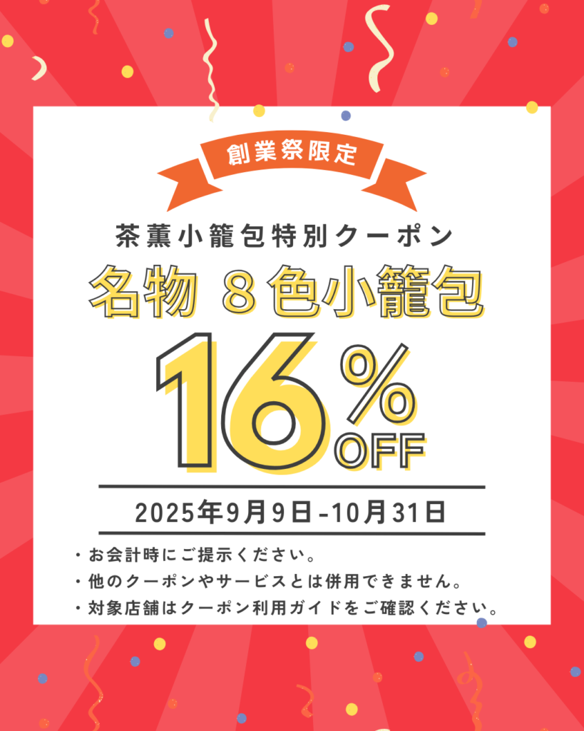 ご来店のお客様に【次回から使える 8色小籠包16%オフ券】をLINEクーポンで配布。